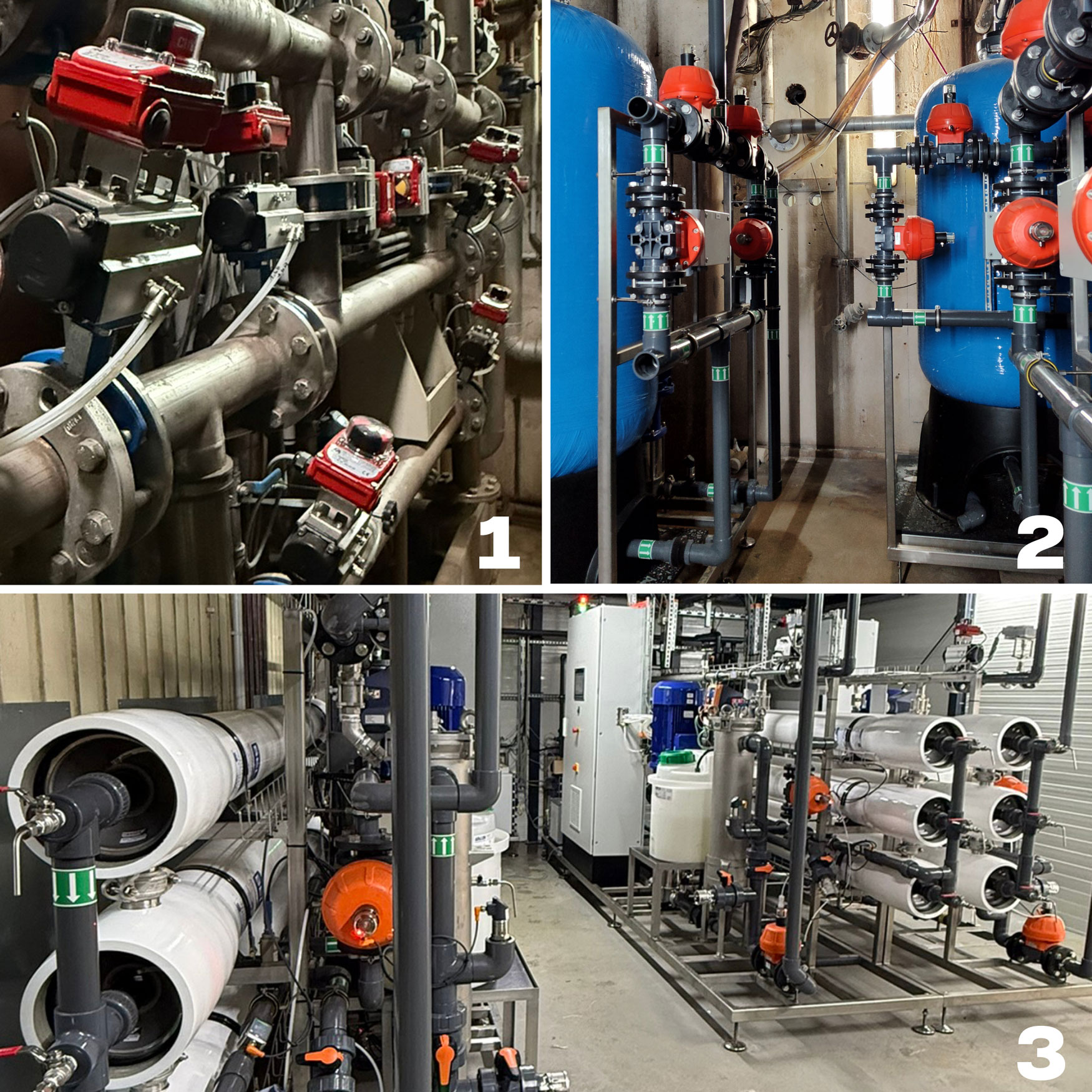 2. Um das Wasser für unsere Umkehrosmoseanlagen optimal vorzubereiten, wurden zwischen Kiesfilter und der Umkehrosmoseanlage drei Tubidexfilter verbaut.